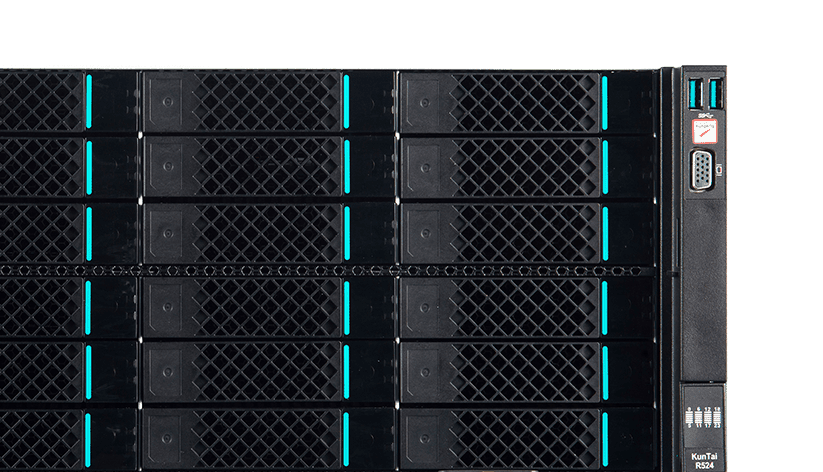 KunTai R524 存储型服务器是GOPAY钱包数码基于鲲鹏处理器推出的新一代 ARM数据中心服务器。。。。主要面向存储业务,,具有海量存储、、、、高性能、、、低功耗以及易扩展的特点,,,,适合为大数据分析、、、软件定义存 储等应用场景的工作负载进行髙效加速。。